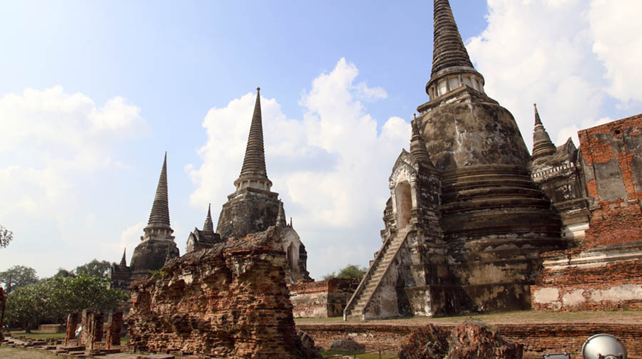 ウートン王(ラーマーティボーディー1世)によって王朝が開かれて以来、およそ400年の間にわたり都として繁栄しましたが、1767年に、ビルマ(ミャンマー)の攻撃により壊滅的な打撃を受け、その繁栄も終わりを告げています。(この後は、トンブリー王朝、そして現在のチャクリー王朝と時代は変遷します)