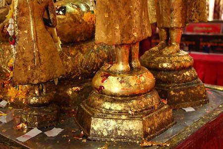 仏像の足元。もう全身金箔が貼られてます。白い紙片は金箔片の貼ってあった残りの紙。