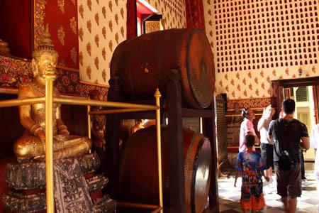 | 年代を感じさせる太鼓。仏教の儀式や節目のお祭りとかに使用されるのかな? |