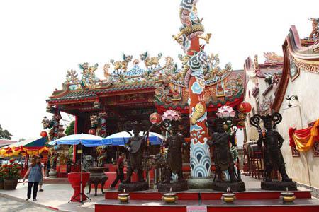 この寺院、タイの王子と中国の王女との愛の神話が元になっているとも言われ、中国系の人たちの信仰を集めているようです。