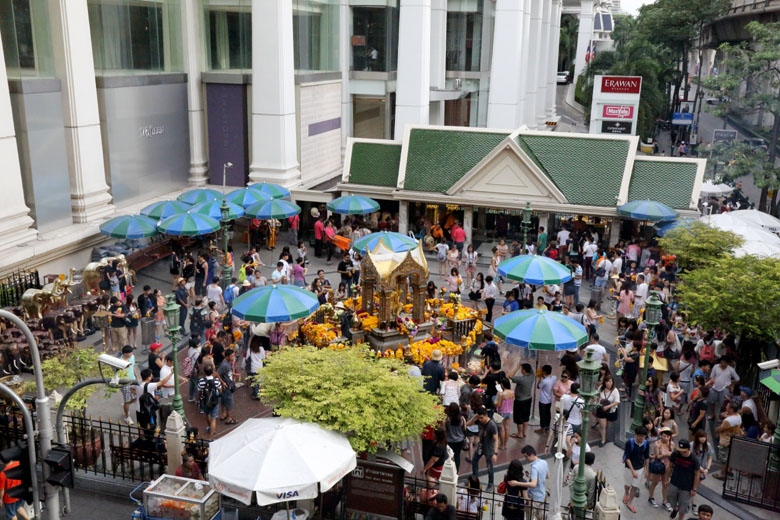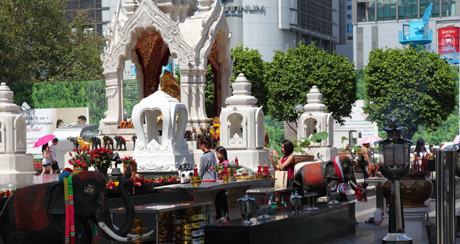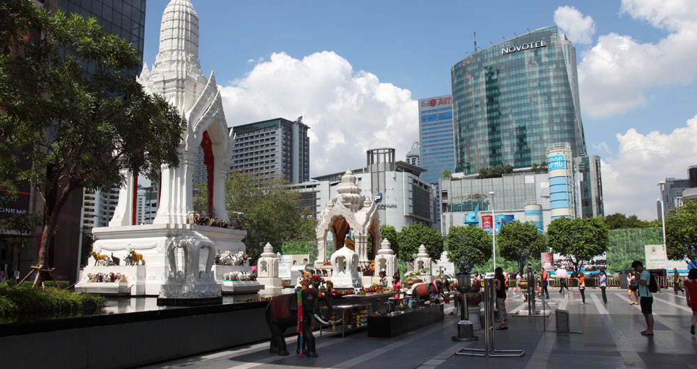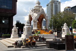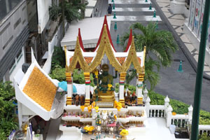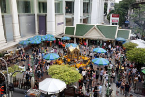 ちなみに、このあたりはパワースポットとして有名な祠が多く集まっていて、伊勢丹前には恋愛の神を祀る「トリムルティ廟」、学問、芸術の神を祀る「ガネーシャ廟」があり、また交差点の向こう側にはタイ最強との誉れの高い「エラワン廟」等があります。何かお願い事がある人には、絶好のスポットのようですね。^-^)