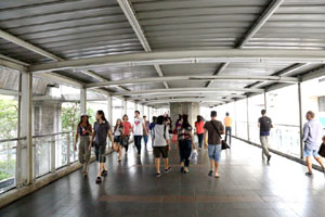 このセントラル・ワールド、BTSスカイトレインでは「サイアム駅」か「チットロム駅」で降り、駅から直接続くスカイウォーク(と呼ばれる歩行者専用通路)をテクテク歩くと到着です。