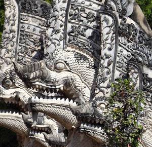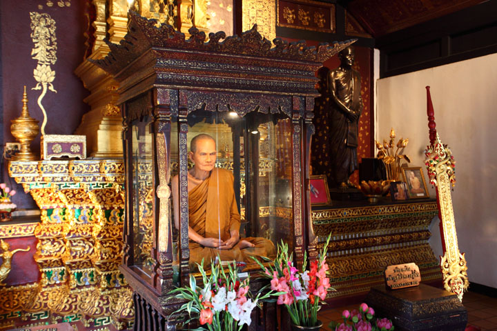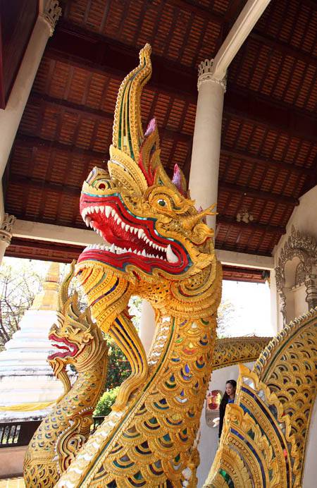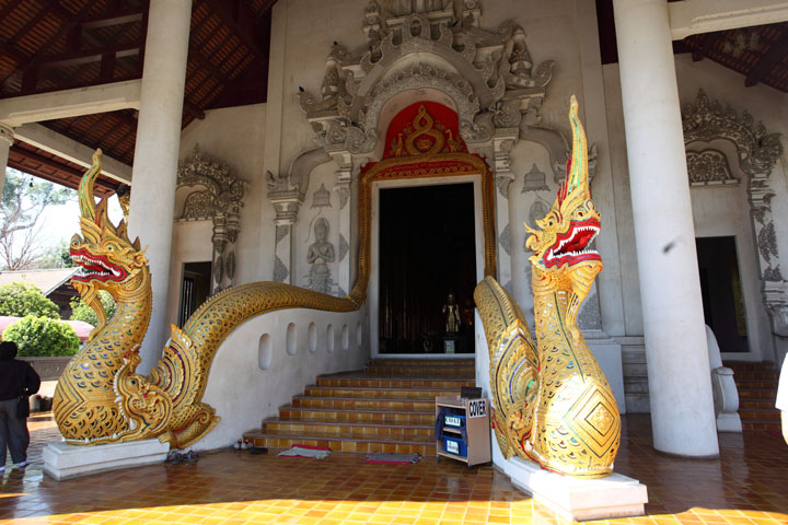 ここを初めて訪れたのは、チェンマイで自転車タクシーの「サム・ロー」でゆったり市内見学した時に案内されました。何やら有名な寺院がある、ということで自転車タクシーに揺られて行くと、他の寺院とは全く異なる姿が目の前に現れ、とても印象的でした。^-^)