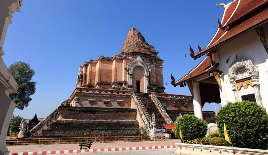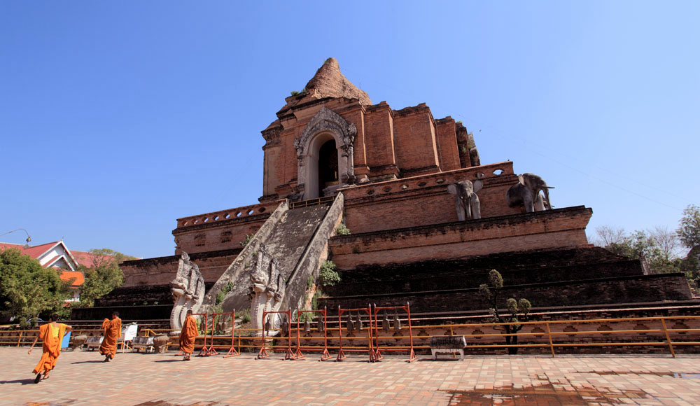 1479年~1481年には改築され、土台の1辺56m、高さ80m、ランナー・タイやスリランカ、ビルマなどの複合した様式の建築となり、タイでは最も重要であるエメラルド仏(Emerald Buddha)も一時ここに納められたそうです。