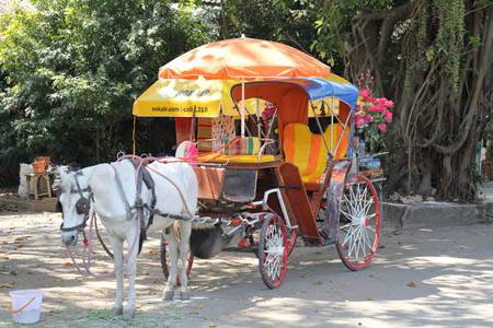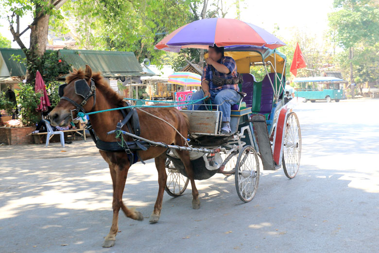 遺跡巡りには馬車やオープンエア―バス、レンタル自転車などが利用できます。(馬車と言えば、タイではランパーンですが、ここチェンマイでも乗ることができるんですね~)