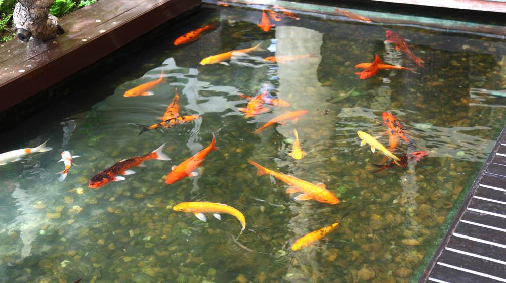 大きな池の周りを囲むようにお店がずらっと並びます