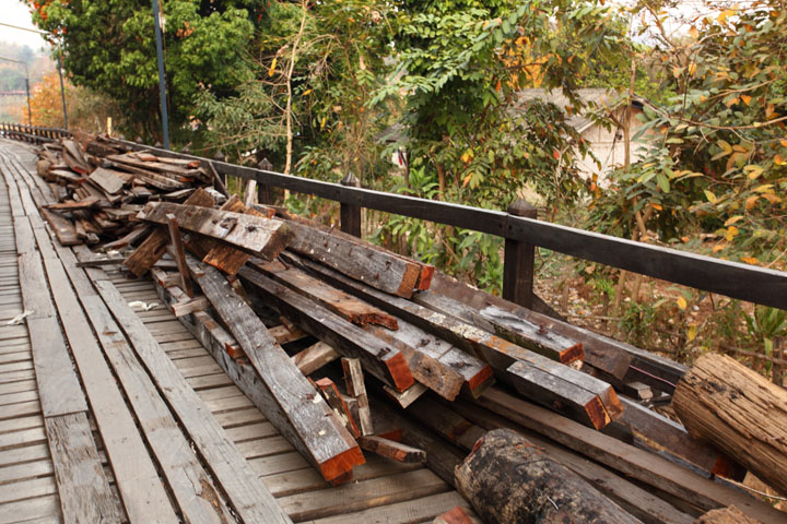 多分修理用の木材が、ちらほらと積まれてます。 |