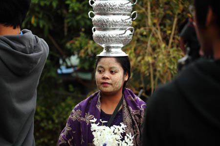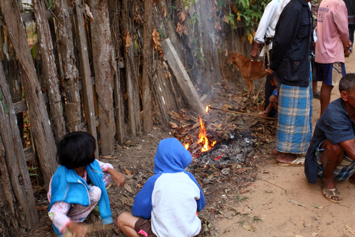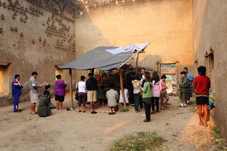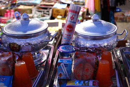 モン族の文字かどうか分かりませんが、服の広告の模様。