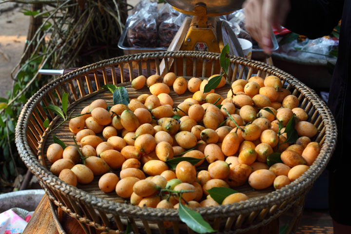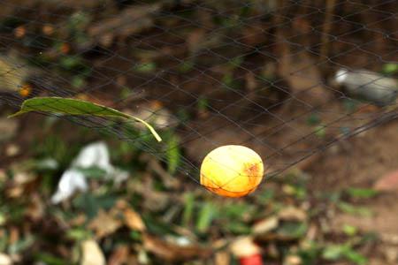 木の下に網を張って、降らして落とす、みたいなことで収穫しています。