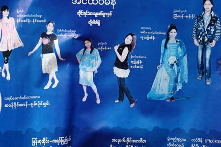 モン族の文字かどうか分かりませんが、服の広告の模様。 |