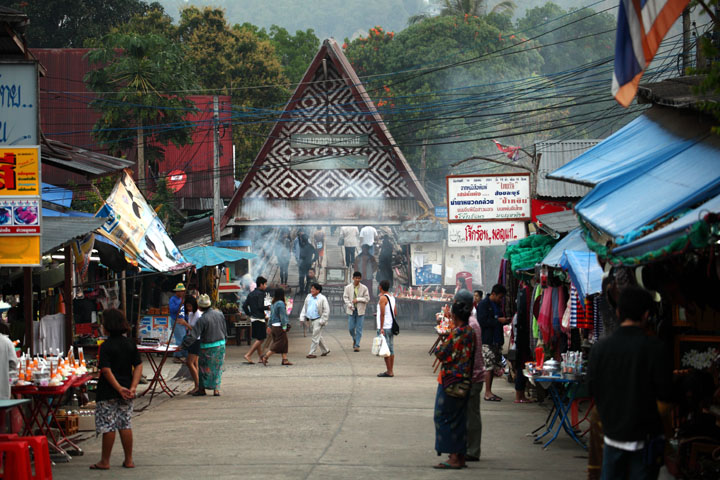 オートバイ禁止の立て札があります。オートバイで入ると、罰金500バーツ(1500円ぐらい?)