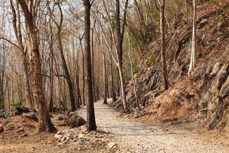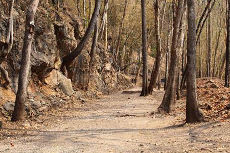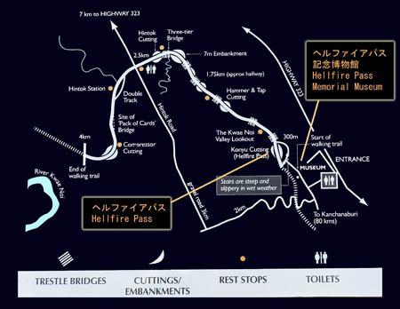 このあたりは有名な「アルヒル桟道橋」(タムクラセー橋)のある所。第二次世界大戦中、日本軍のビルマ戦線への唯一の補給路である泰緬鉄道。その建設において、クウェー・ノイ川に沿って岩壁スレスレに建設された木造橋がこのアルヒル桟道橋。