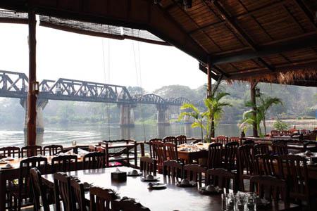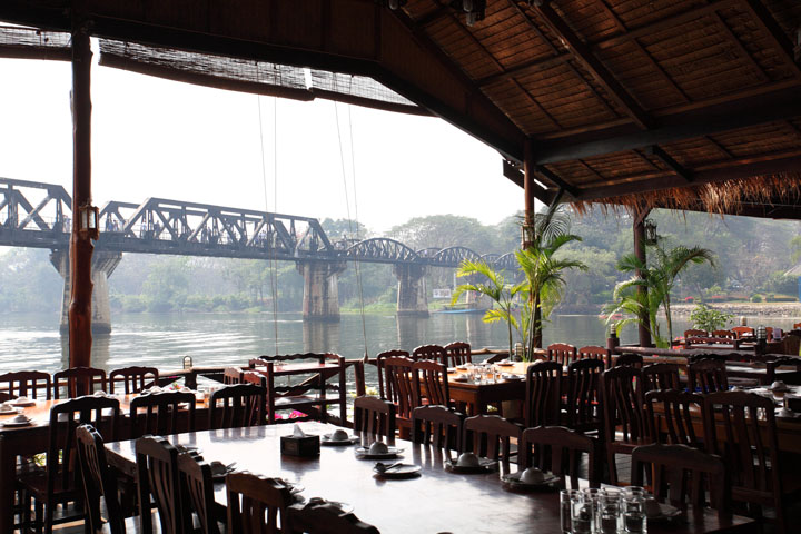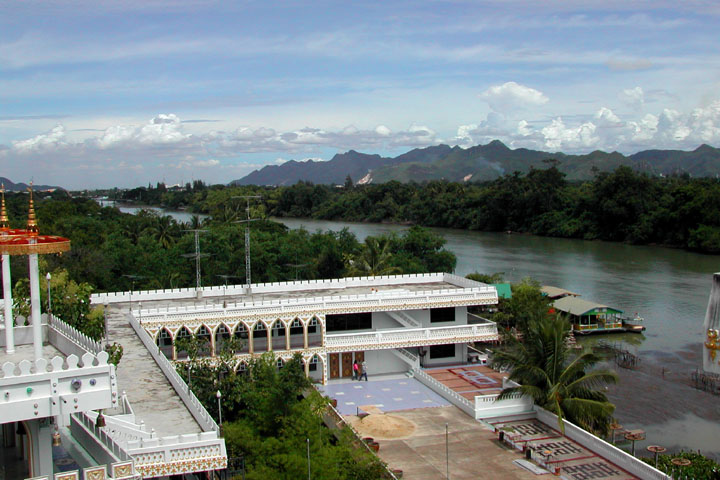 屋上から見下ろした風景。クウェー川鉄橋が見えますね。 |