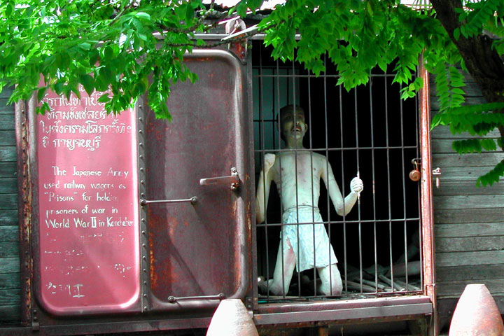 (カンチャナブリで日本軍は、第二次世界大戦中、列車の車両を捕虜の監獄として使った)