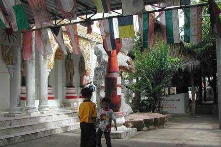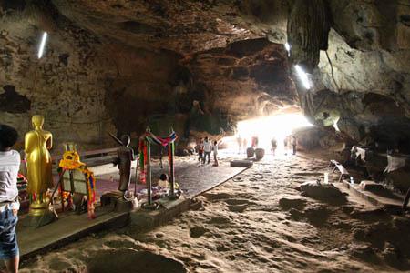 線路の脇にあるタム・クラサー(クラサー洞窟)。大きな仏像が祀られてます。 |