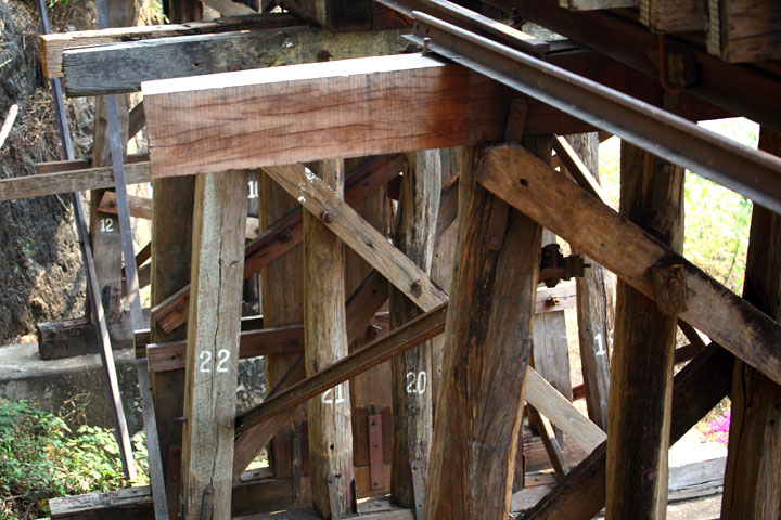 第2次世界大戦時(1943年)、日本軍によりビルマへ侵攻するために建設されたタイ・ビルマ(ミャンマー)をつなぐ泰緬鉄道においてクウェー・ヤイ川に架けられた鉄道橋で、現地の人や連合軍捕虜の莫大な犠牲の上、建設されました。