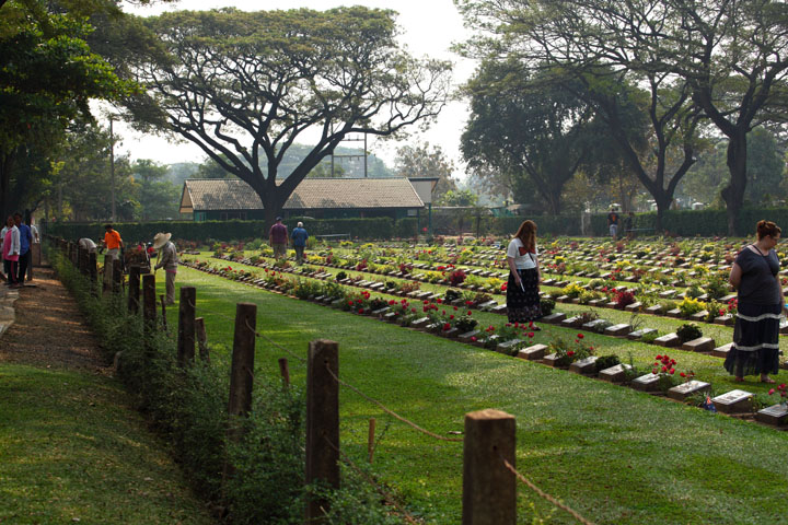 その時に犠牲となった捕虜は、カンチャナブリー駅の近くの連合軍共同墓地に眠っています。