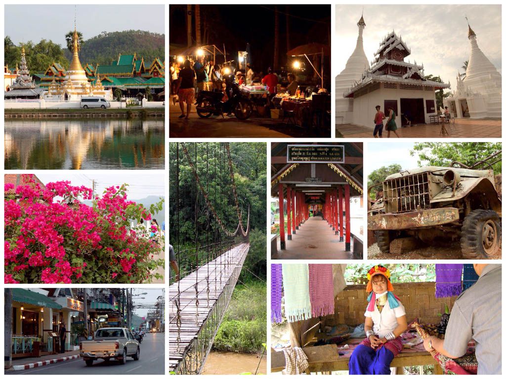 個別ページで紹介している山岳民族の村「バン・ナイ・ソイ」(カレン族 - 首長族で有名)や、池のほとりに佇むビルマ様式(ミャンマー様式)の寺院「ワット・チョンカム」、山の上に建つ「」などが有名です。温泉もあったりします。