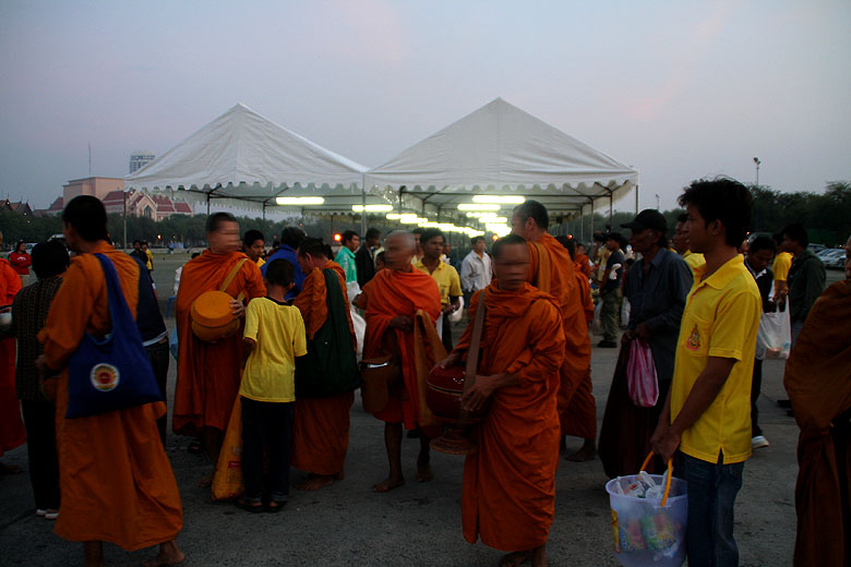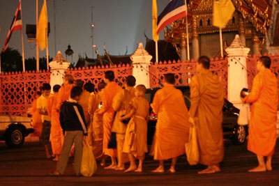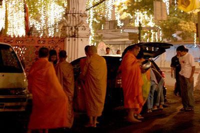 沢山のお坊様とタンブンする人たち。