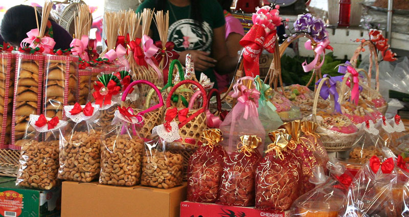タイのお菓子の贈り物。綺麗に飾られた、お正月用のギフトセット