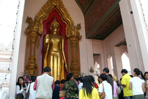 仏塔の正面には大きな仏像があり、沢山の人が参拝してます。