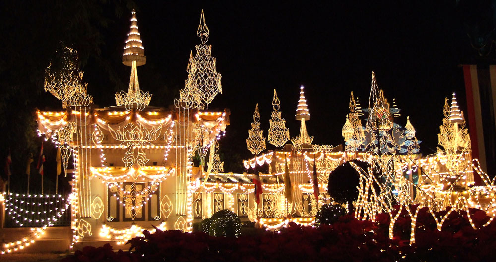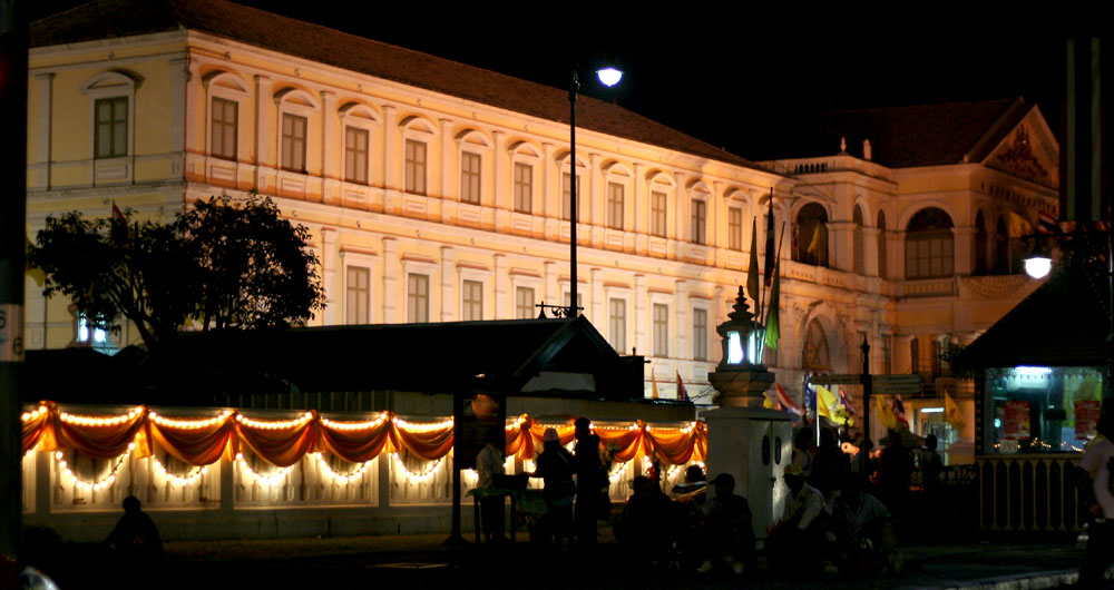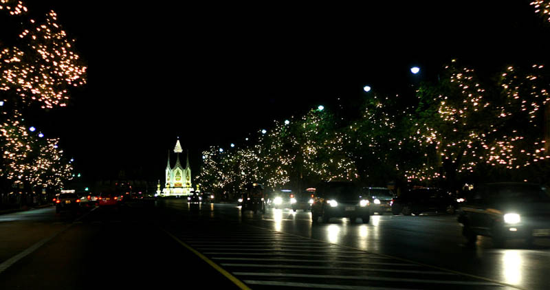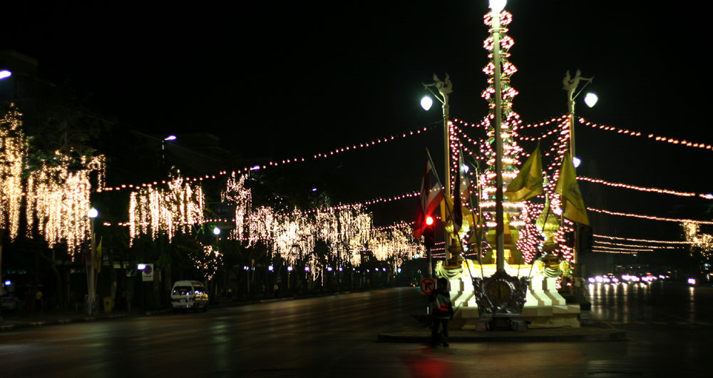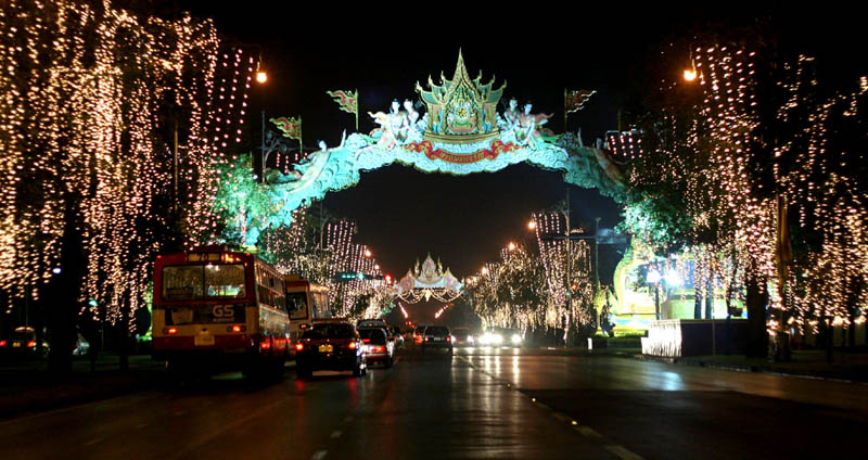 年始年末や、国王や王妃の誕生日など、大きなイベント時にはこのように通りや建物が光で飾られます。今年(2007年)は少し特別で、前年が60周年記念であったこともあって、いつもより電飾が多いようですね
