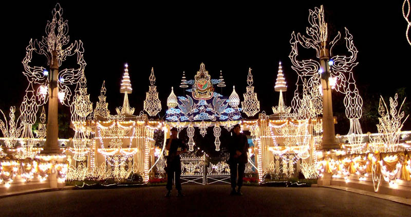 2006年のラーマ9世:プミポン国王陛下御在位 60 周年の時と同様に、通りや建物が光で飾られ、とても綺麗です。