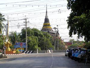 ナーン川に沿って広がる町で、スコータイ王朝後のアユタヤー王朝時代にも重要な都市であったようですが、大火により昔の町並みはありません。