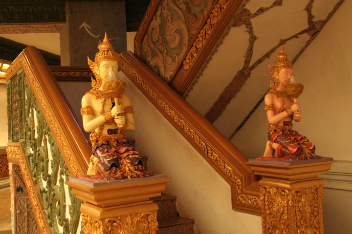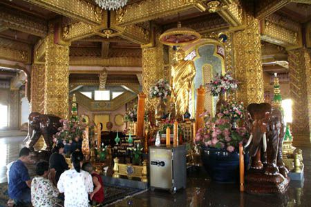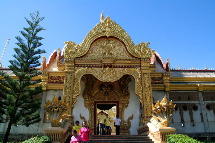 昔々にロイ・エットに来た時も、このページに紹介しているとても美しい寺院「プラ・マハ・チェディ・チャイモンコン」(Phra Maha Chedi Chaimongkon)に寄っただけですが、今回(2008年)もウボン・ラーチャターニーからムクダハーンに行く途中にこの寺院によっただけでした。^-^;)