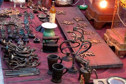 これでもか、というぐらい非常に多くのお店が並び、確かにアンティークなもの、珍しいもの、(や単に古いもの)、何だろうと思わせるものなどで一杯です。 珍し物好きや、アンティーク、骨董品に興味のある人には絶好の場所かも。