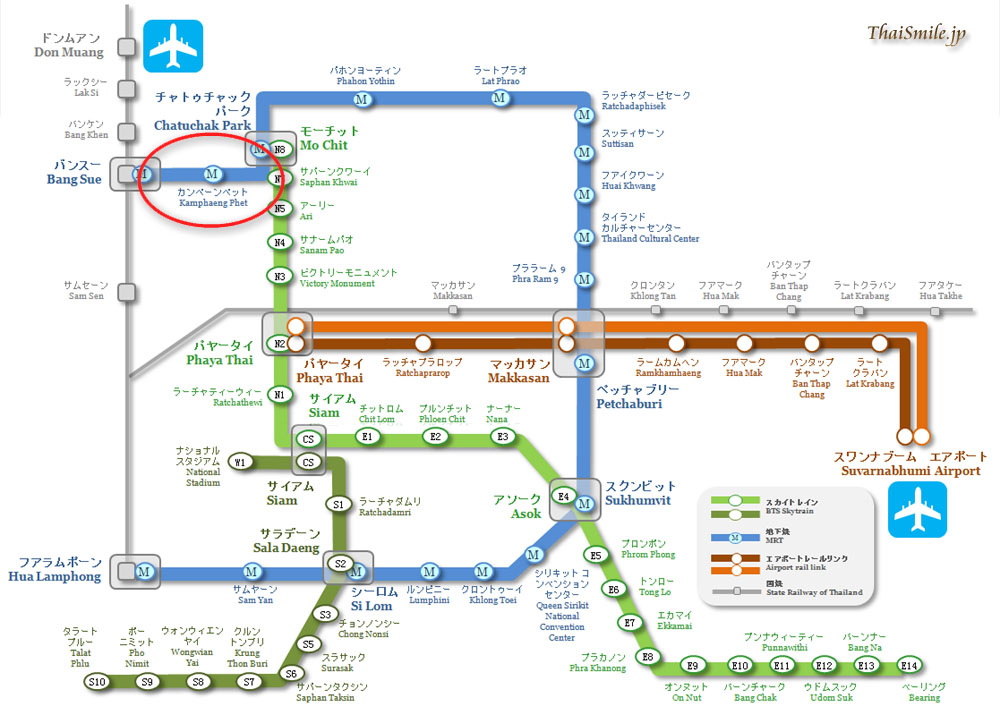 この駅の周辺には、バンコクの市場で超有名な「チャトゥチャックマーケット」や農業共同組合直営市場「オートーコー市場」もありますね。