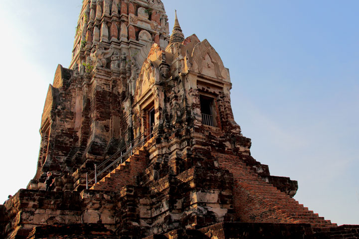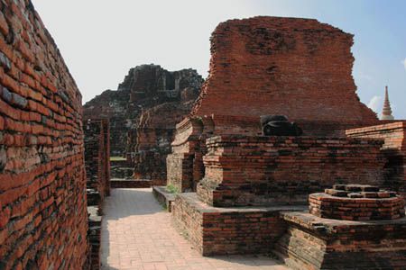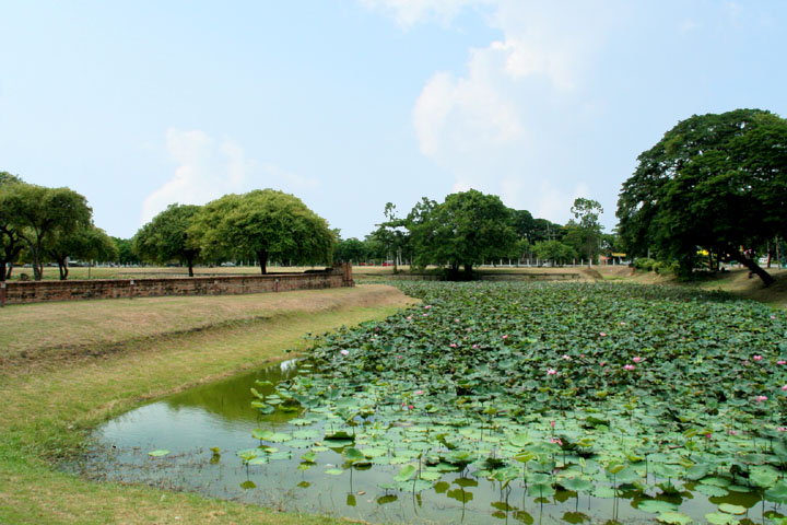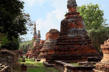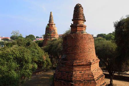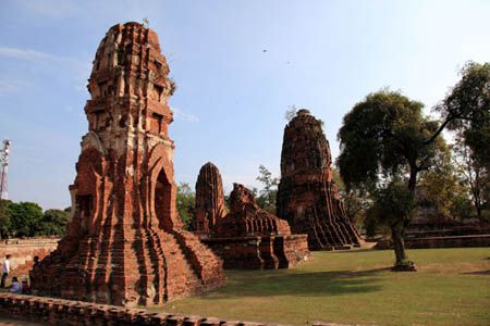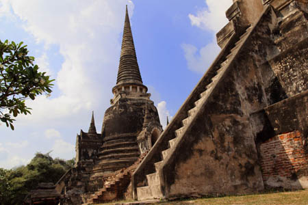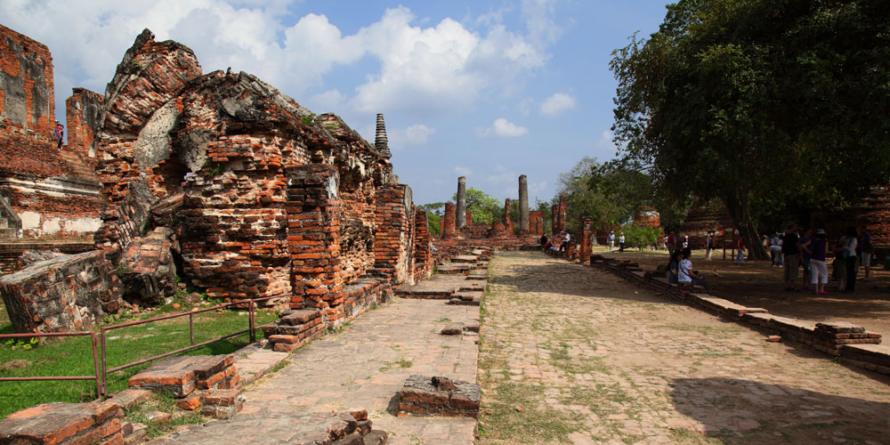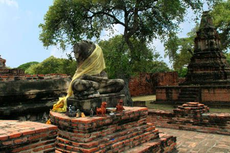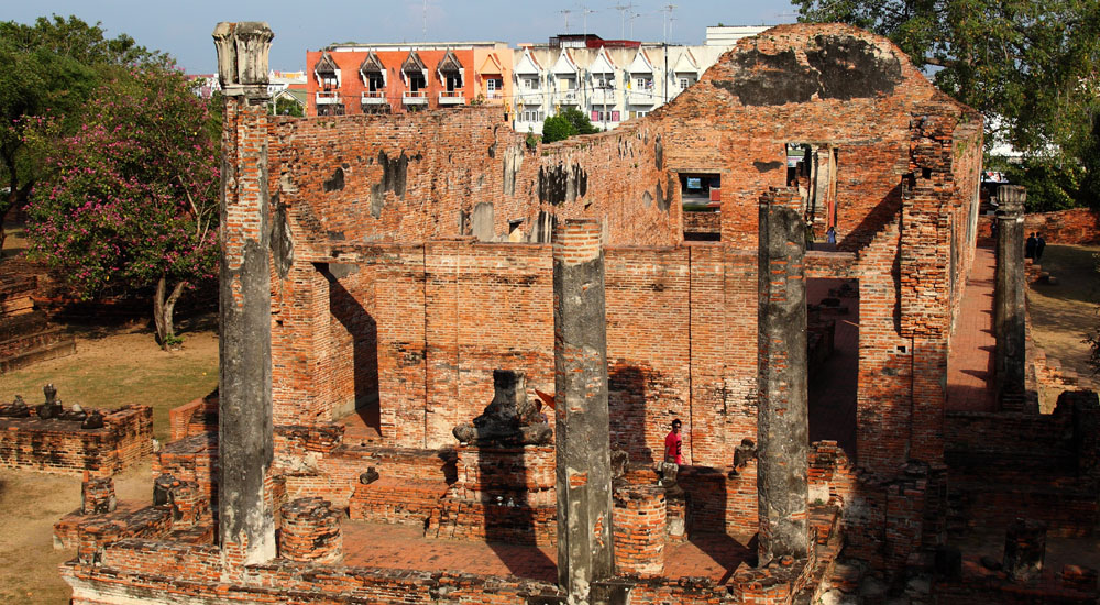 The Ayuttaya city is surrounded by Chao Phraya river (Menam Chao Phraya) and its branches. The old buildings were destroyed because of a lot of fights with Burma during the Ayutthaya period.