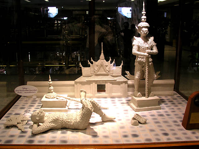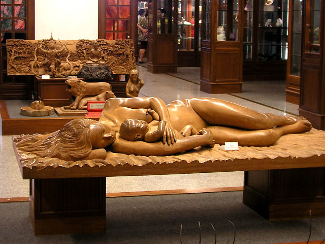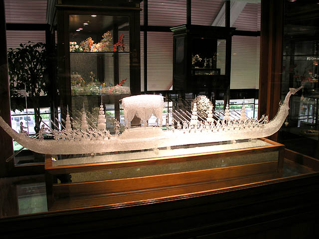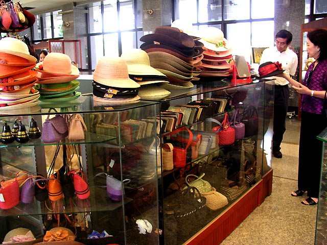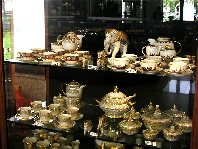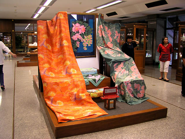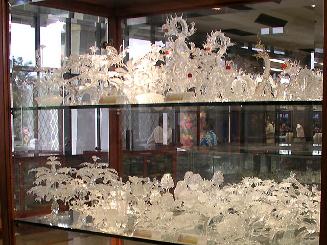their lives. She arranged instructors to make handicrafts and improve the quality of the products, and then set up a foundation to support it in 1976. Bangsai Arts and Crafts Centre was founded in 1980 and H.M.Queen Sirikit has managed this centre since 1984. The first picture in the pictures below looks like a factory of handicrafts, and other pictures are the exhibition hall called Sala Pra Ming Kwan where handicrafts are displayed. You can see various products and will never get bored. :D |