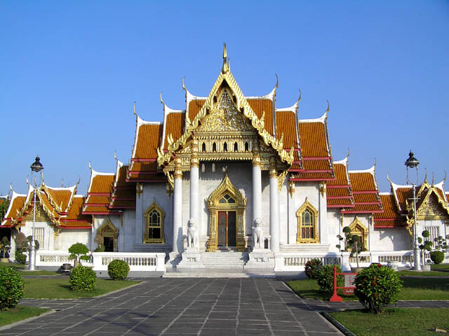 Wat Benchamabophit Dusitvanaram Ratchaworawihan or simply Wat Benchamabophit was build in the reign of Rama V in 1899, and is well-known as Marble Temple, made of white Carrara marble from Italy.It's located in Dusit District of Bangkok, close to the old parliament building (Ananta Samakom Throne Hall) or the Chitralada Villa (part of Dusit Palace , the official residence of His Majesty King Bhumibol Adulyadej). The main Buddha statue is a replica of Pra Buddha Chinarat in Wat Phra Sri Rattana Mahathat Phitsanulok that is said to be the most beautiful Buddha statue in Thailand, but I didn't enter inside. Too sad ! :D By the way, the picture above shows the scenery of an early morning in Bangkok on the way to the Marble Temple. A lot of people were already ready to work. Take care. :) |