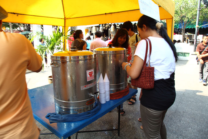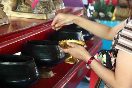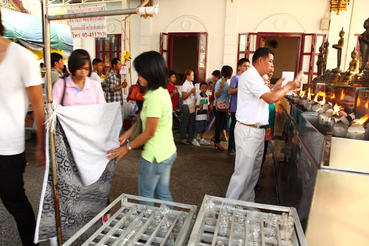 | You can drink water colored pink, called "Naam Yaa Uthai". | Praying while filling oil. | ||