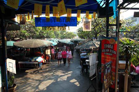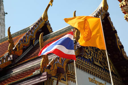 | You can let them swim away in the river to accumulate virtues. | Around the entrance. Flags of Thailand and Buddhism. |