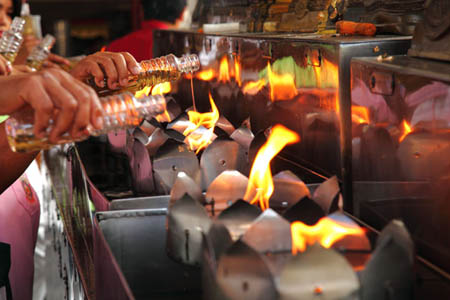 | Incense sticks for praying. | Praying while filling oil. | ||