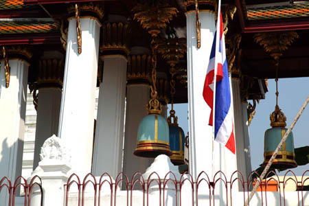 called "Wat Bang Wa Yai" and was built during the Ayutthaya period (1351-1767). It's located on the west bank of the Chao Phraya River in Bangkoknoi district, facing the Grand Palace.In 1769, the temple was appointed to be a second-class royal temple by King Taksin The Great of the Thonburi Kingdom (1767-1782), and Phra Tripitaka (Buddhist Scriptures) was brought from Nakhon Si Thammarat province and a Buddhist council was held to revise it. The temple was rebuilt during the reign of King Rama I (1782 - 1809) at the end of the 18th century, and a large bell was found during some construction at the temple. The bell was moved to the Temple of the Emerald Buddha, and instead, five smaller bells were donated to the temple. This is why the temple is called Wat Rakhang (Temple of the Bells). There is a library (or Ho Trai in Thai) where Buddhist Scriptures are kept and that was once the residence of King Rama I before he was crowned. (New Years of 2010) |