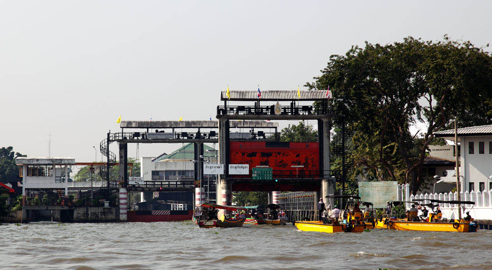 city, and then empties into the Gulf of Thailand.Cities along the Chao Phraya include Nakhon Sawan, Uthai Thani, Chainat, Singburi, Ang Thong, Ayutthaya, Pathum Thani, Nonthaburi, Bangkok and Samut Prakan, listed from north to south. The Tha Chin River is the major distributary of the Chao Phraya River. The expanse of the Chao Phraya and Tha Chin Rivers and their distributaries, starting at the point at which the distributaries diverge, together with the land amid the triangle formed by the outermost and innermost distributary, form the Chao Phraya Delta. The many distributaries of the Chao Phraya delta are interconnected by canals that serve both for irrigation and for transportation. (From Wikipedia - Chao Phraya River) |