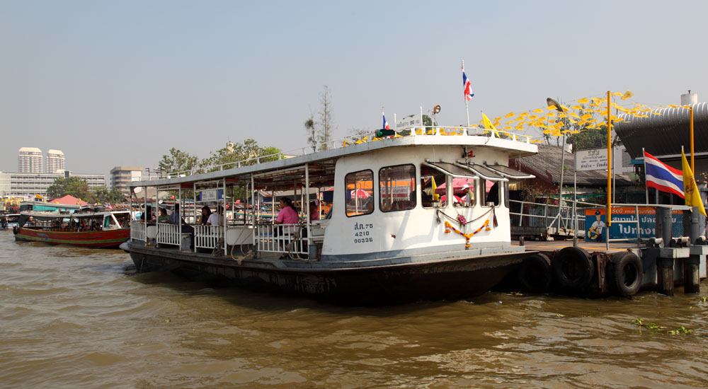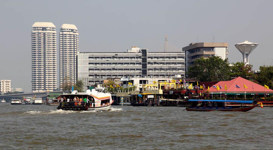 | A boat has come to the pier. | The view of the Chao Phraya River. | ||