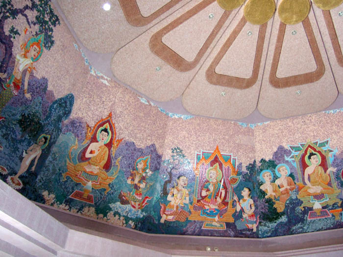 (If you look up, you will see Buddhist paintings all around the roof.) |