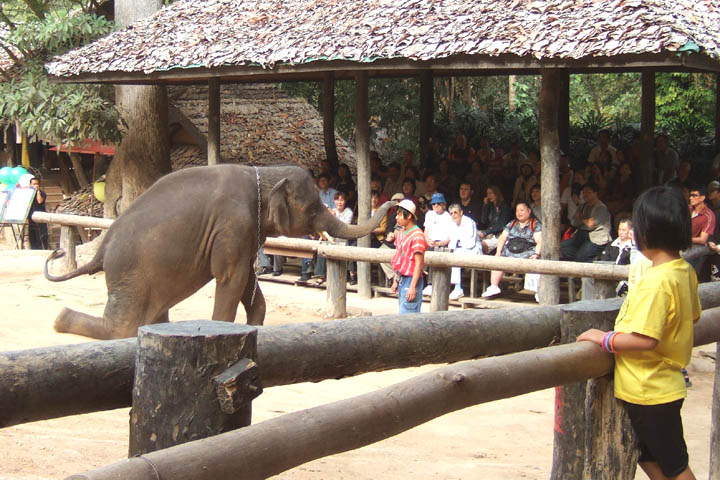 This is a training center of elephant in Chiang Mai's Maesa Valley. Dozens