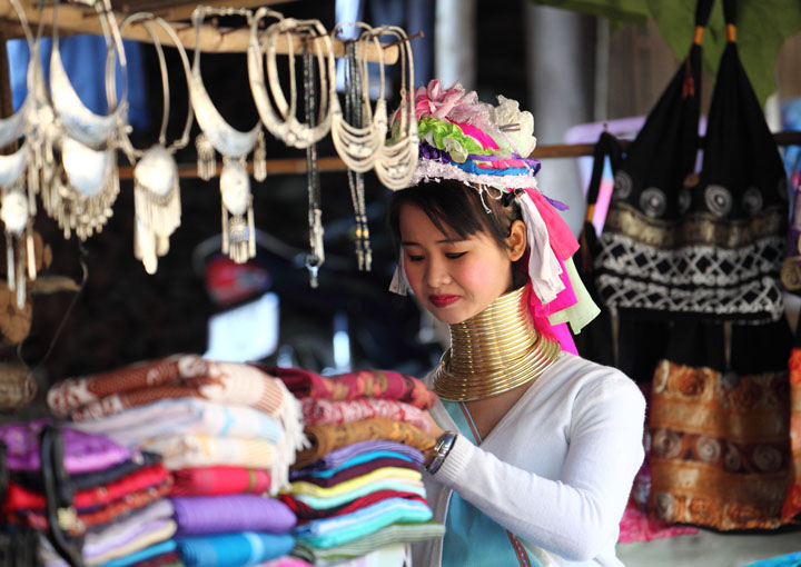 The Karen hill tribes (Long neck or Padong) originally lived in Myanmar