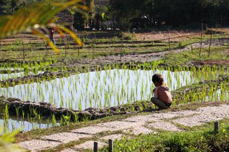Rice field and a kid
