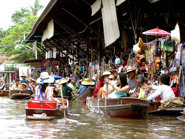Damnoen Saduak Floating Market. A lot of people enjoy it.