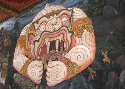 | Paintings 1 Paintings in the galleries surrounding the temple. They are from Ramakien, the Thai version of the Indian Ramayana. (The picture above is my favorite) |