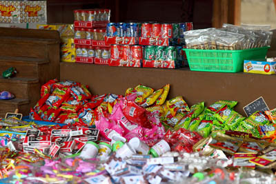 | こちらはジュース? いくつもビンが並んでますが、飴とかジュースかな? |
