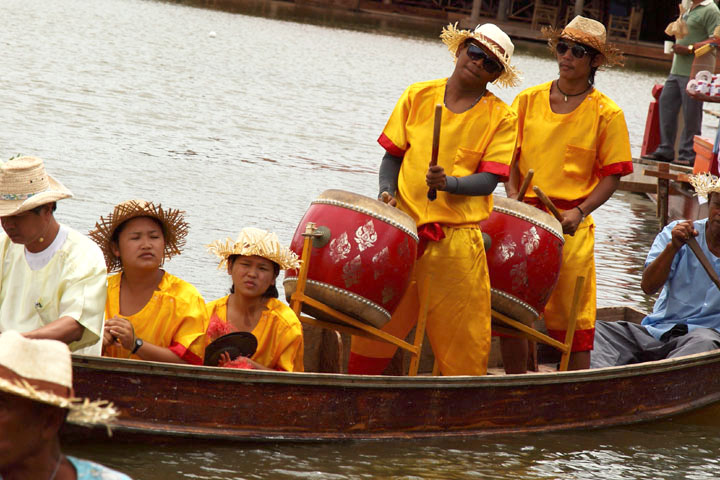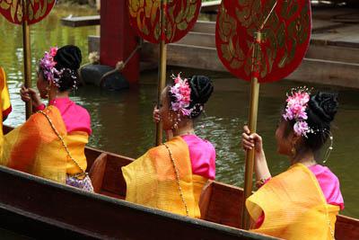 | Attraction 1 Around noon, some attraction on the pond can be seen with music. A few boats march on the pond with beautiful ladies and drums. |