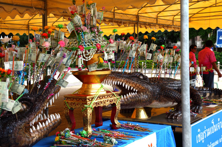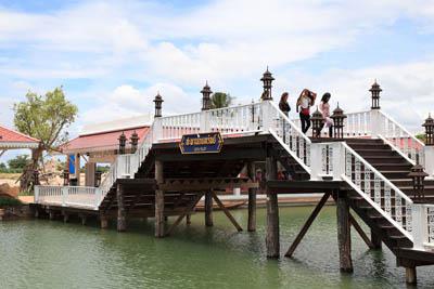 "Damnoen, the morning market" in Ratchaburi, "Ampawa floating market" in Samut SongKhram, and Pattaya Floating Market, called "Talad Nam Si Pak", and here in Hua Hin, they also have it.It looks still new, and the market called "Sam Phan Nam Floating Market". This market is specially for tourists, not for locals for their daily lives, but you can enjoy shopping and seeing around the market. (Aug in 2011) |