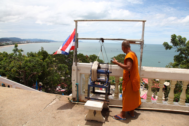 Wat Khow Takiab (Wat Khow Takiab / Wat Khao Takiab) is in Hua Hin, south of Thailand.The name "Khow Takiab" means, "Khow" is "hill", "Takiab" means "chopstick". That is, "Chopstick Hill". It has a long stairways to the temple (better than Doi Suthep in Chiang Mai, though :D). Walk up hard the lots of steps and when you reach the top, your efforts will be rewarded with a great view of the ocean of Hua Hin. By the way, this place has a log of monkeys like Phetchaburi. Be careful if they get closer to you. (Aug. 2011) |